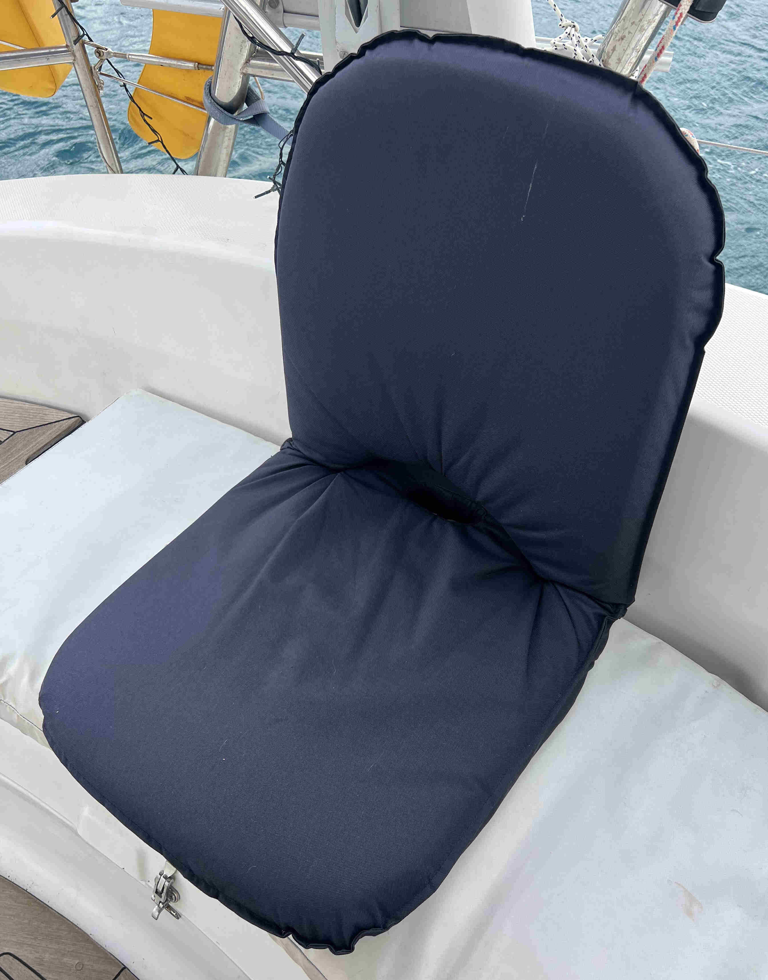 Solid portable backrest we can move around the boat at will. Performs as advertised, doesn't get dirty, dries fairly quickly, and is heavy enough to not get blown out of the cockpit in high winds.