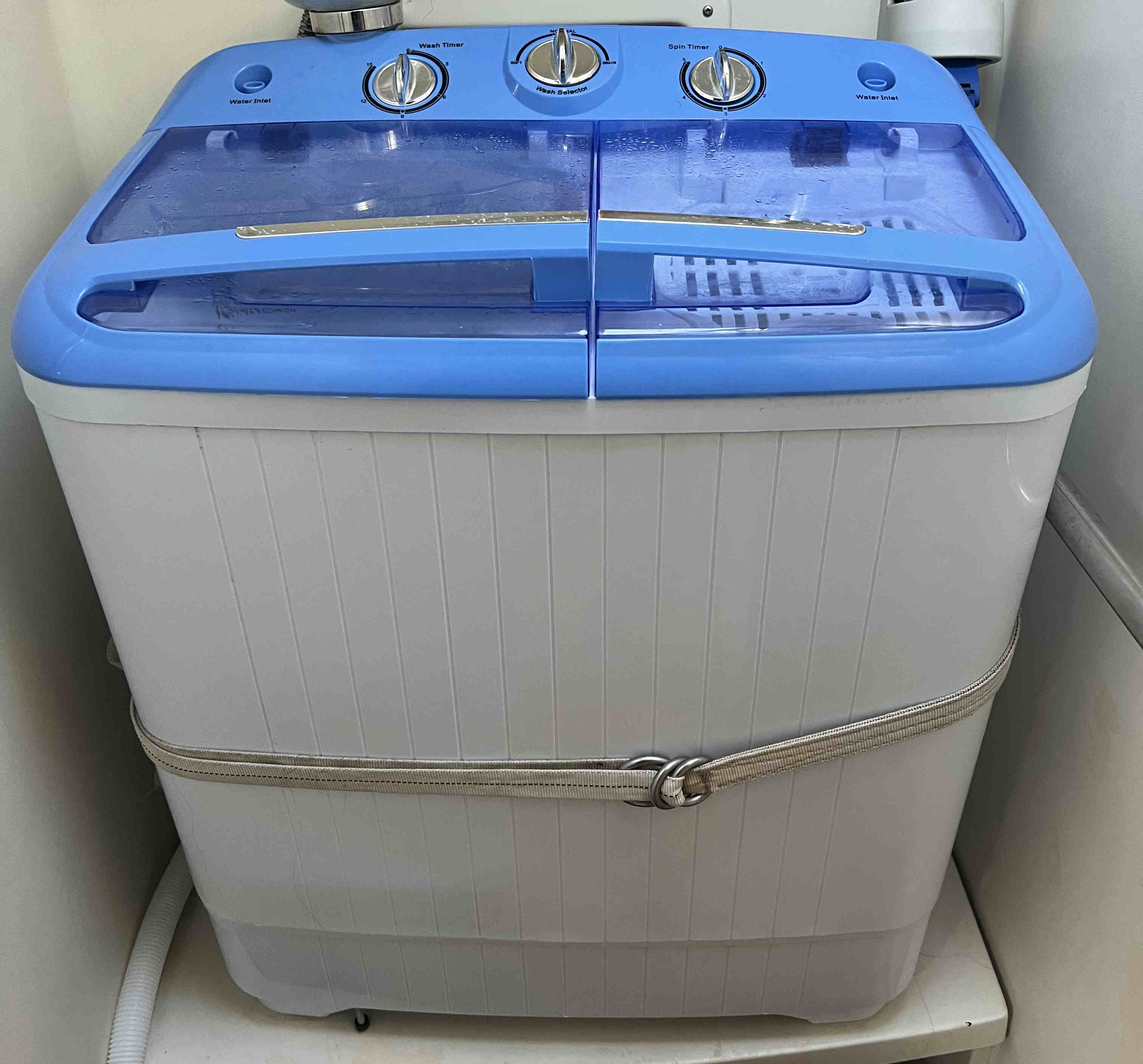 This Washing Machine fits in our boat! Its a little laborious, but does manage to wash our clothes and saves us a lot of money. There are better options if you have more room onboard or more money to spend.